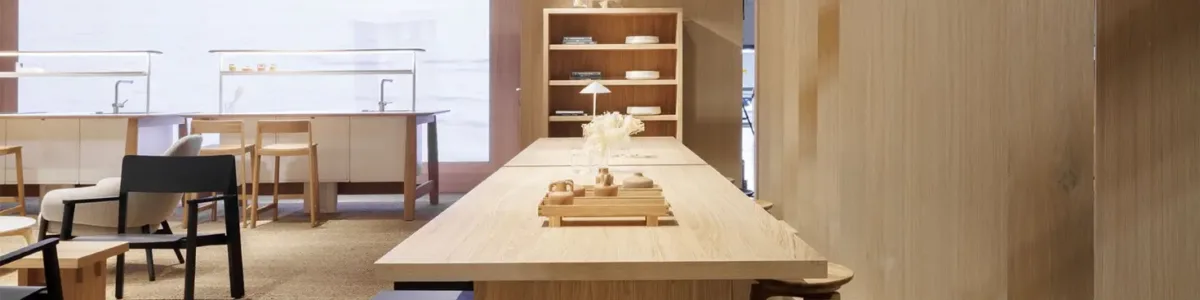 Designed by Copenhagen-based studio Norm Architects, Essence is a tribute to the use of timber and its implementation in pure, iconic forms, which are complemented and consistent with each other. At first glance this collection appears linear and simple, but a closer look would highlight the beauty in the interlocking joinery detail which becomes the iconic element of the entire family – featured throughout the tables, benches, stools, bookcases and sideboards.