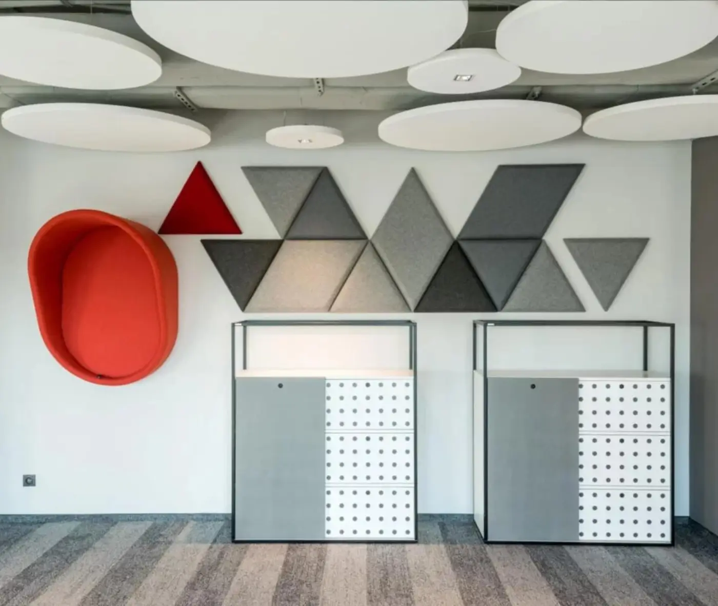 Blocks panels offers ultra high sound absorption properties (Class A, 100% sound absorption). They offer an instant improvement of acoustic environment in both large open-plan areas, as well as in single office rooms.