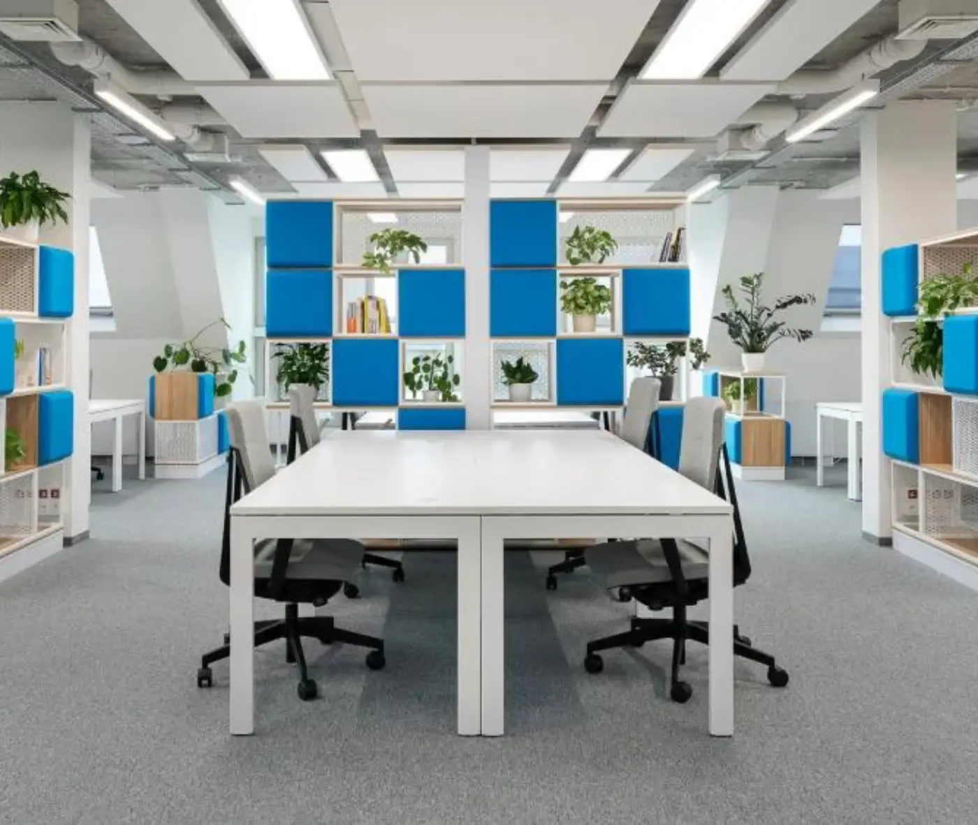 Blocks panels offers ultra high sound absorption properties (Class A, 100% sound absorption). They offer an instant improvement of acoustic environment in both large open-plan areas, as well as in single office rooms.