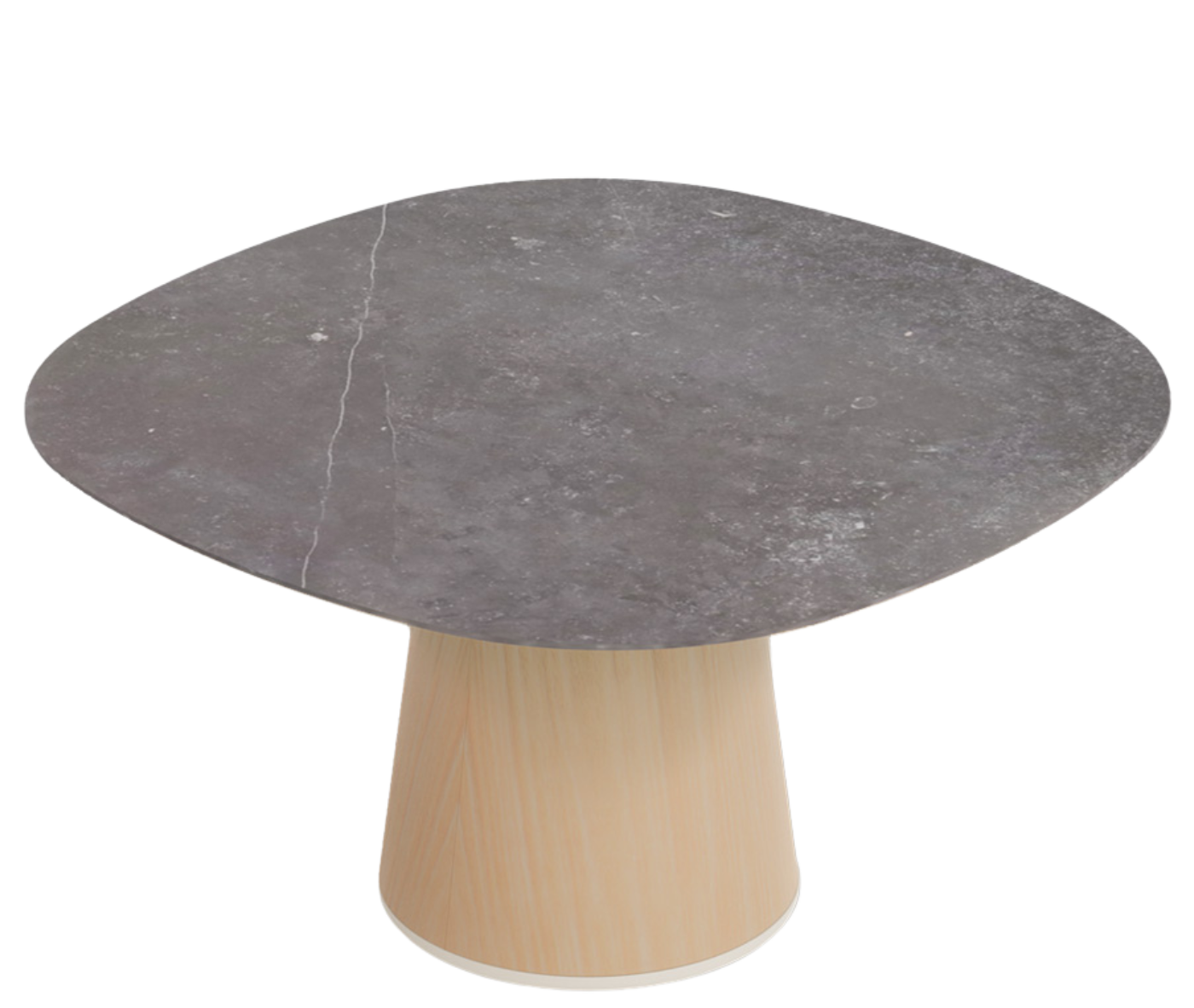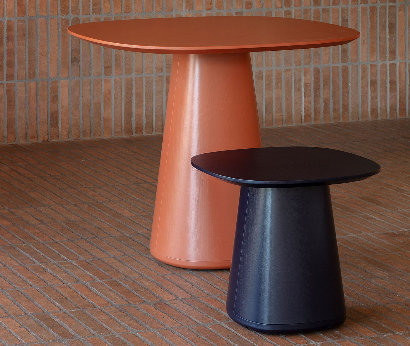 A refined table collection defined by its elegant central base and subtly geometric profile, Conic introduces a gentle shift from circular to square forms — creating a sculptural silhouette that varies by height. Its versatile proportions and quiet presence make it suitable across a wide range of applications, from residential lounges to collaborative commercial settings.