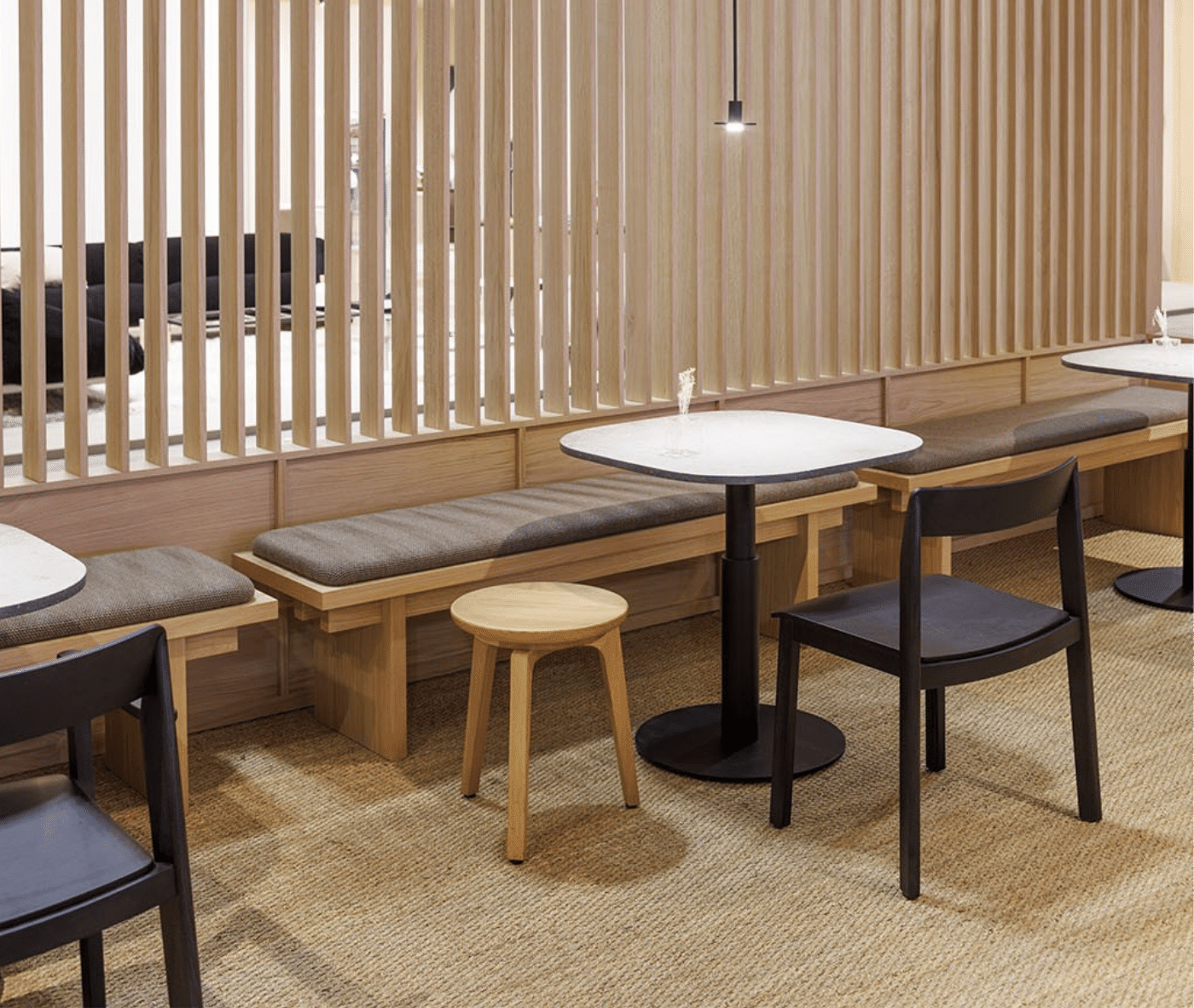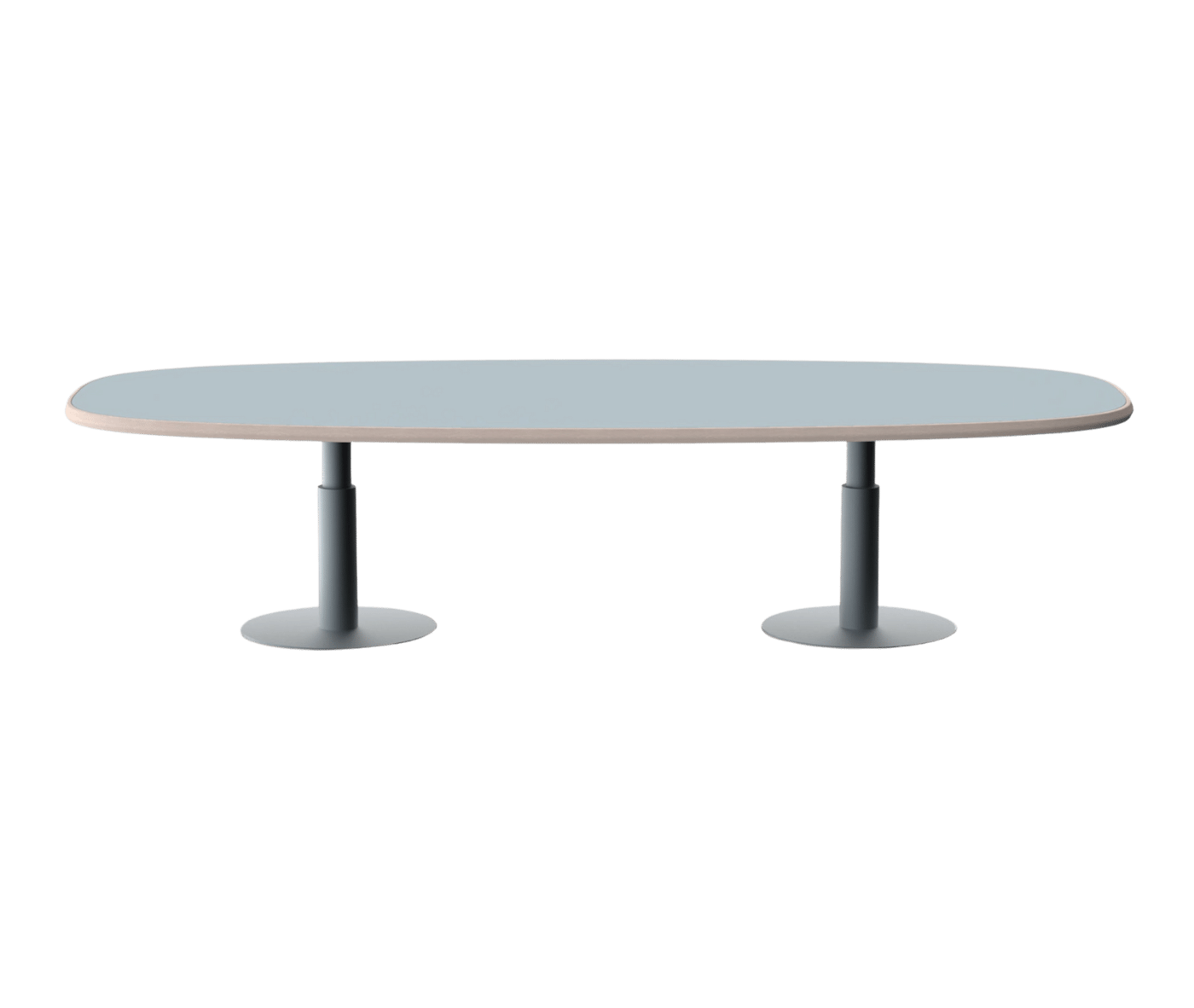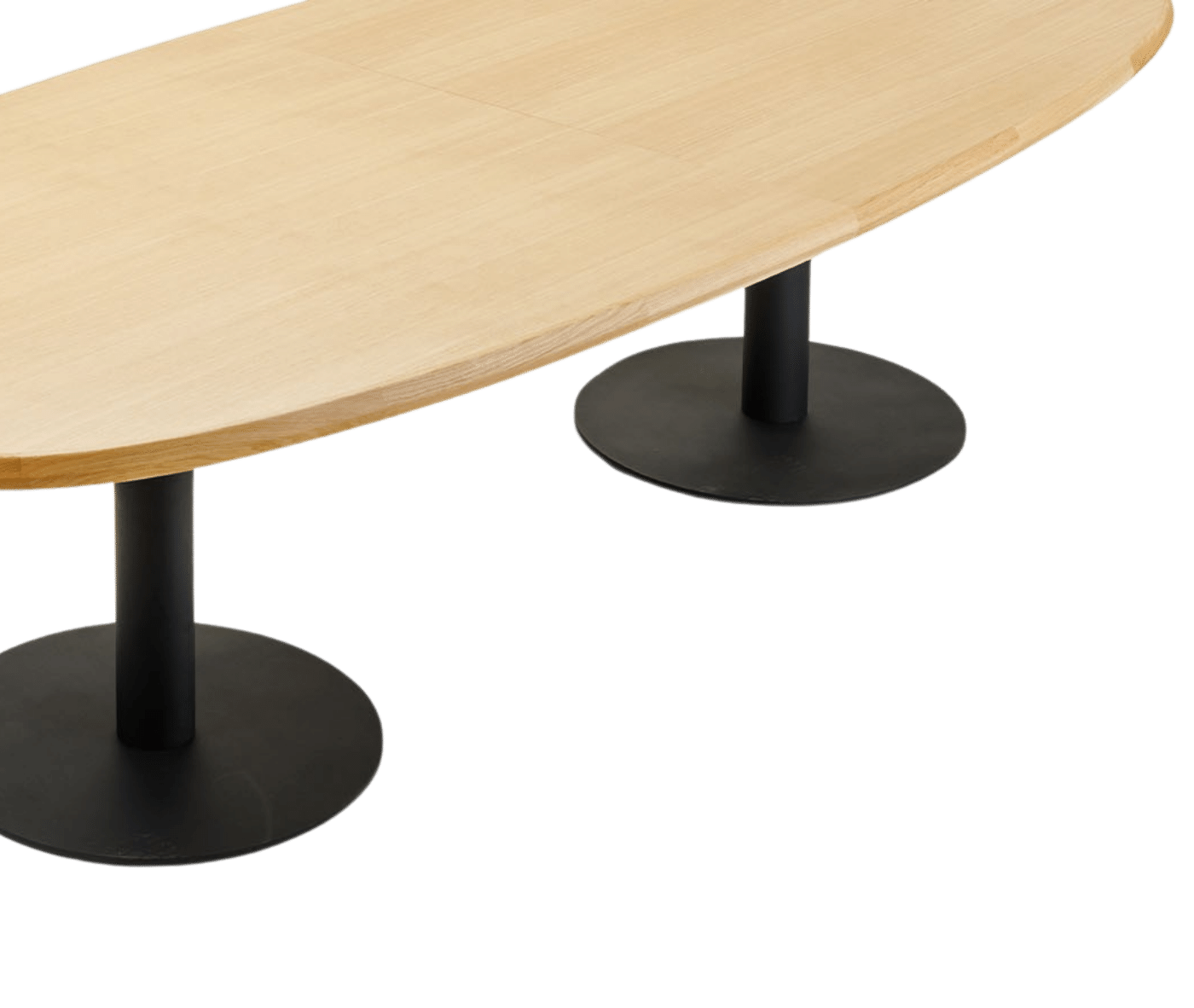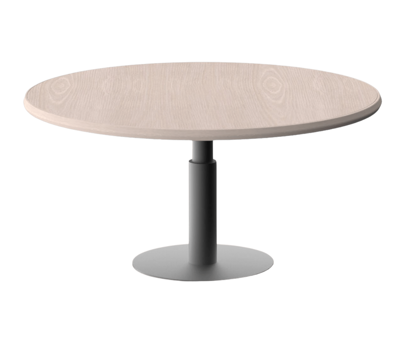 The tabletop features beech plywood with solid wood edging, while the sturdy base consists of a central concentric steel column, available in a variety of colours. The table’s unique design centres on the top profile, making the edge a focal point of both style and functionality. Its technical composition — including the solid wood frame, beech plywood core, and concentric steel base — embodies a harmonious blend of functionality and sophistication.
