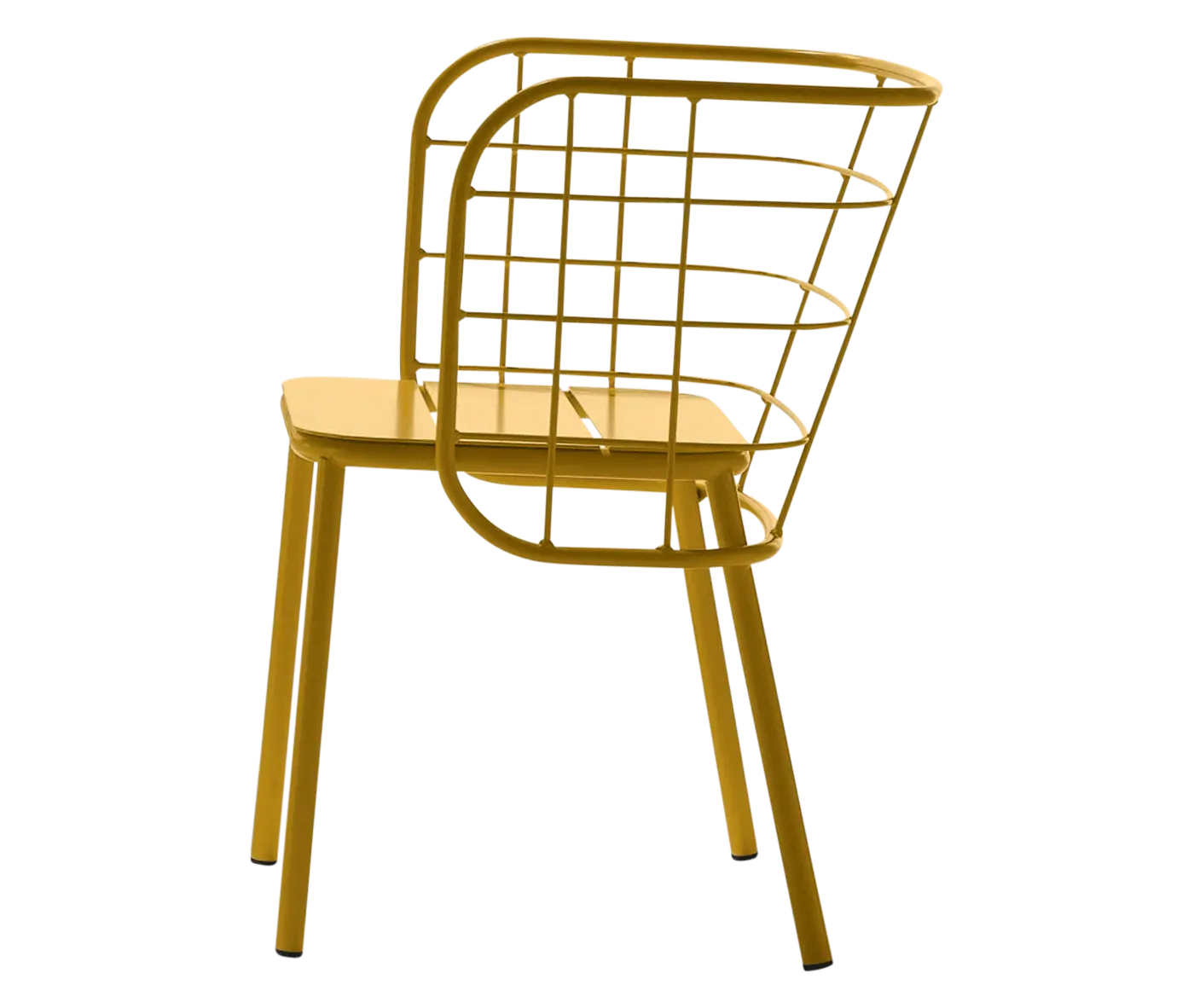 The tubular backrest, designed with metal rods, is the decorative element that characterise this collection, realised with materials and finishes resistant to weathering.