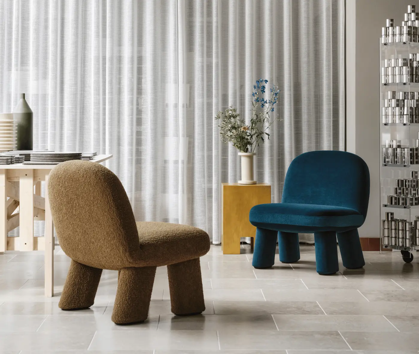 Max is the dressed-up version of Maximus, Johan Ansander’s playful and iconic easy chair presented in 2021. As Maximus was smoothly shaped from timber, Max offers soft comfort fully clothed with a springy lushness – positioning Max as both a continuation of Maximus or as two completely independent characters.