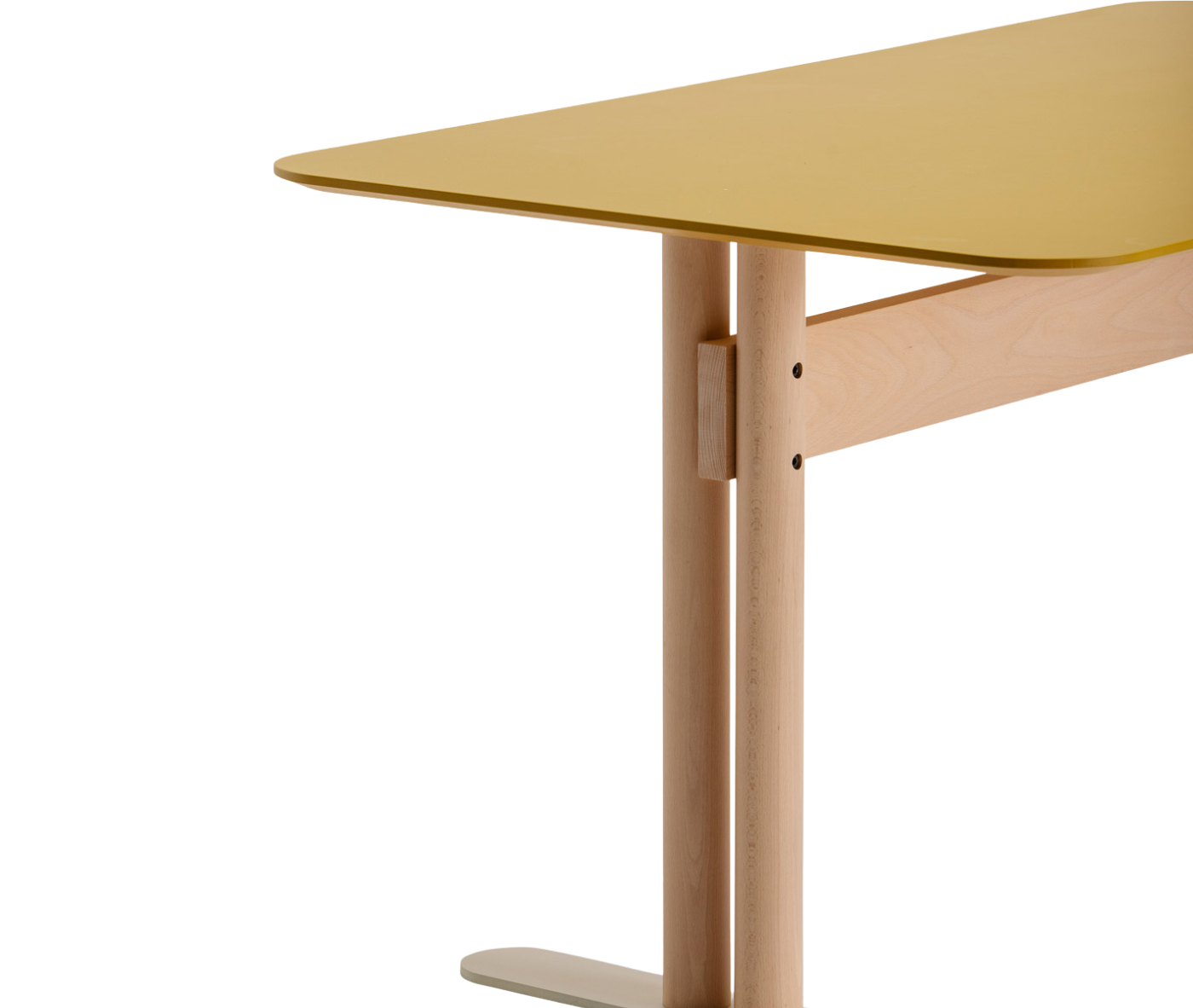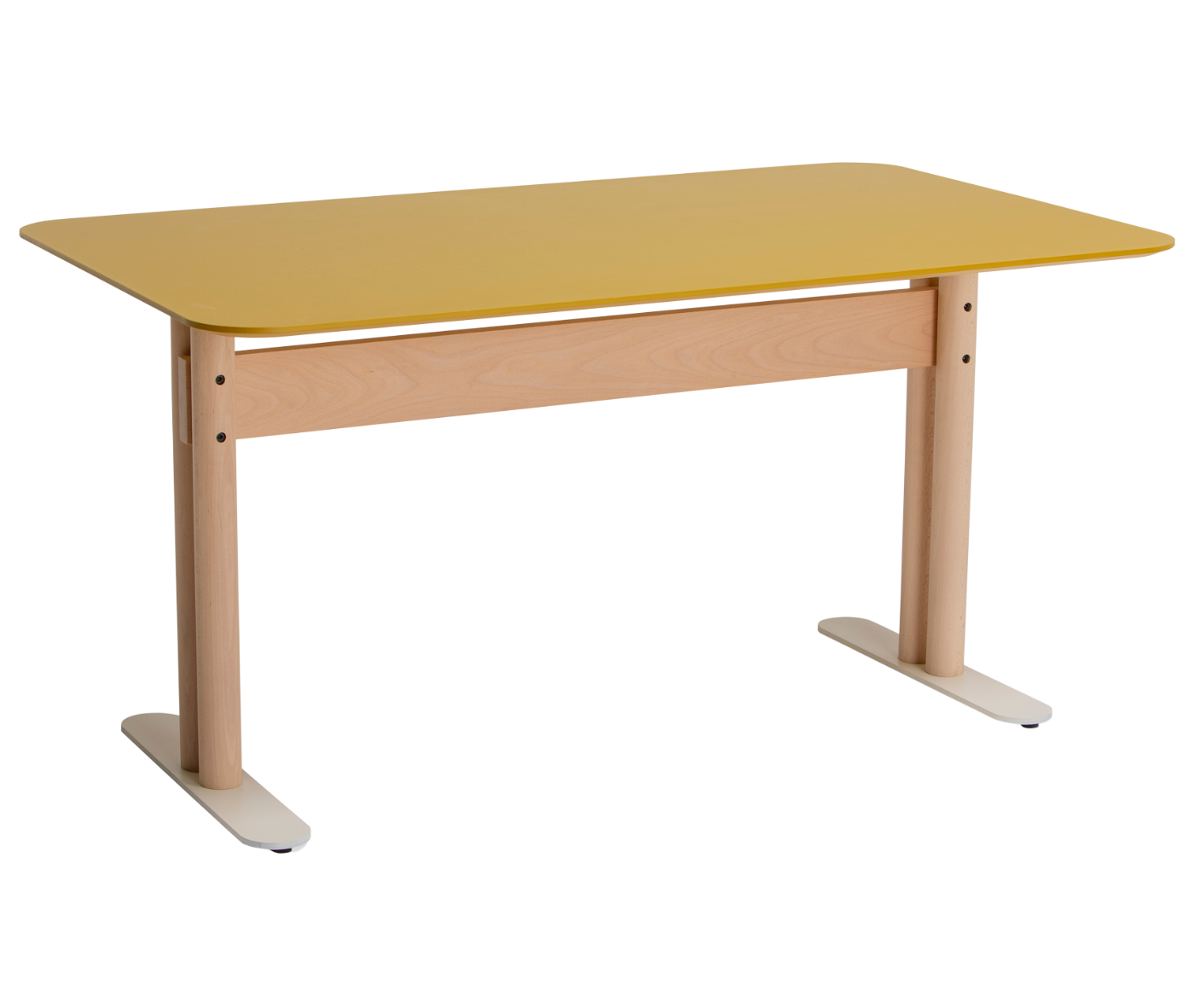 Muga Rectangular is built around accessibility and everyday comfort. Its central leg design keeps the perimeter clear, making it easy to pair with all kinds of chairs and armchairs, while also improving approach and manoeuvrability for wheelchair users. Carefully rounded edges enhance safety in busy environments, helping prevent knocks, bruises, and injuries.