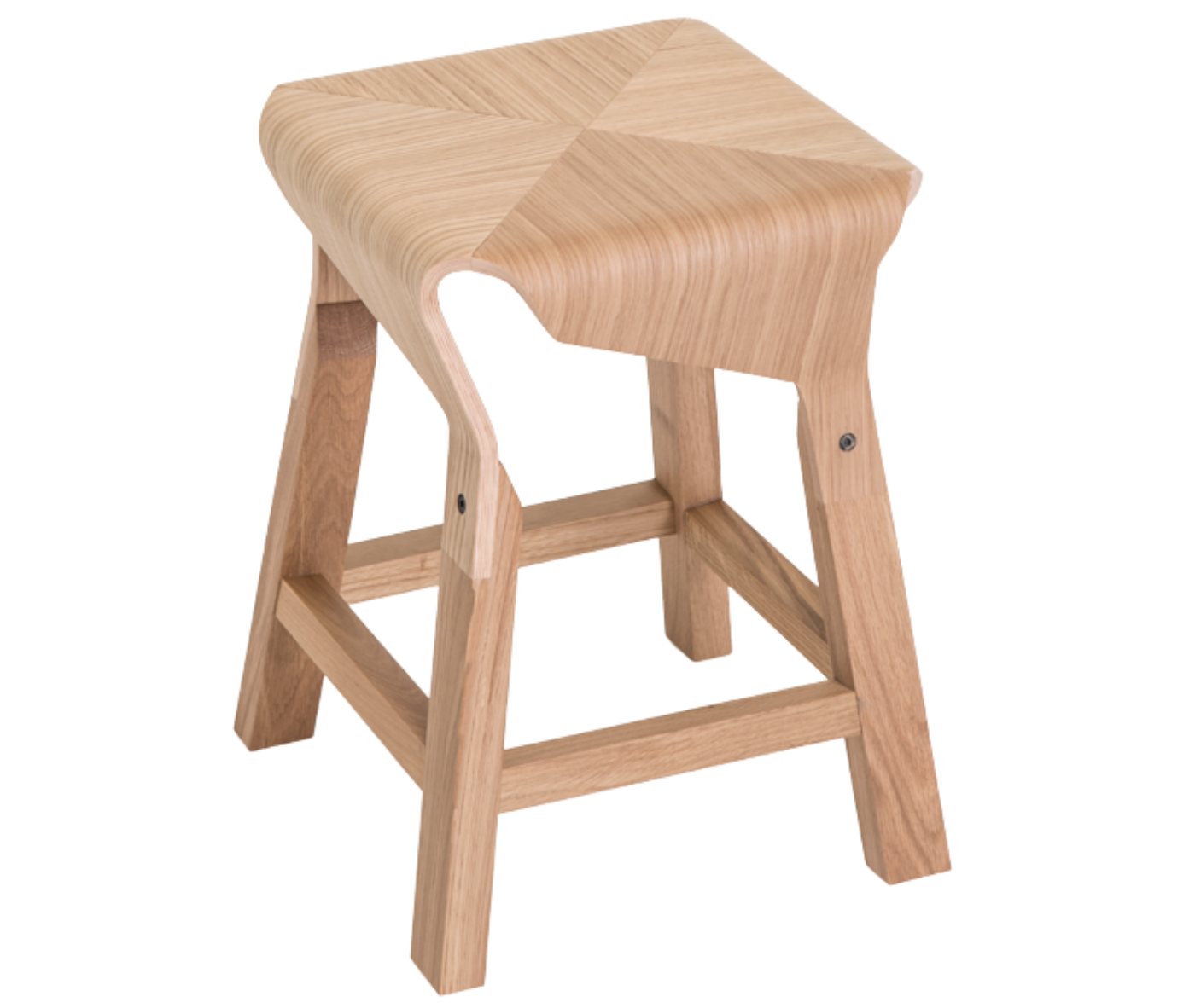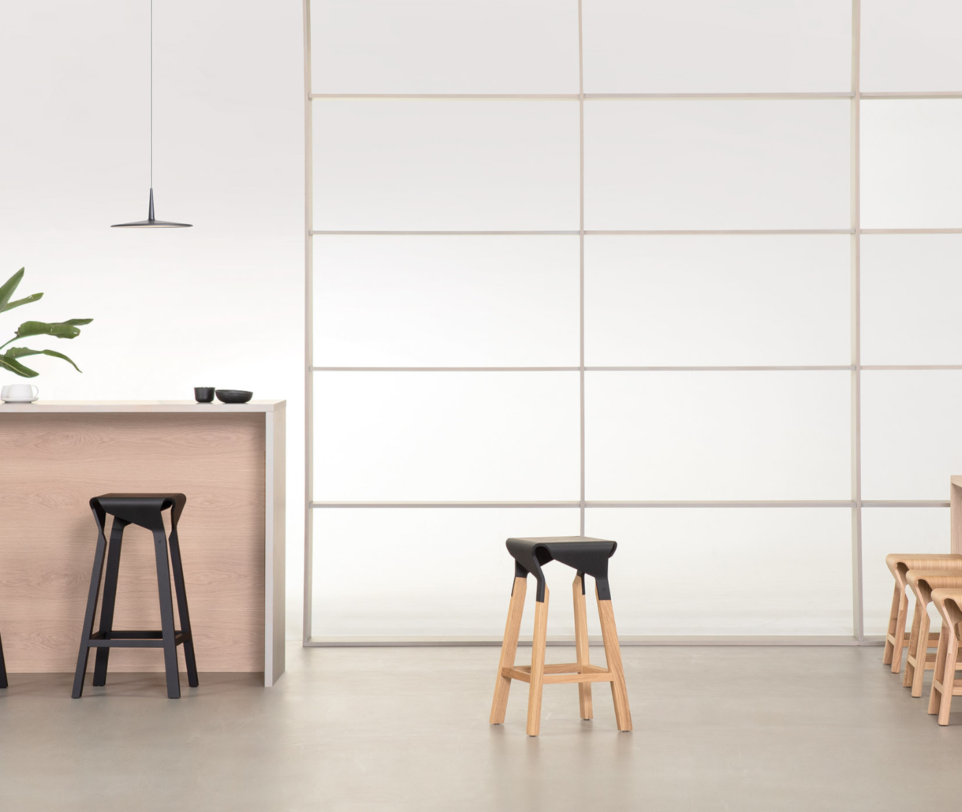 Available in three seat heights, Naoshima joins four identical elements to shape the seat, which extends seamlessly into solid ash wood legs — a composition that feels both sculptural and grounded.