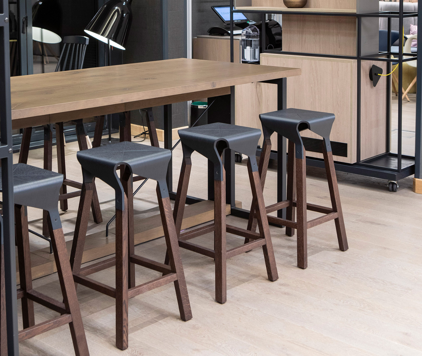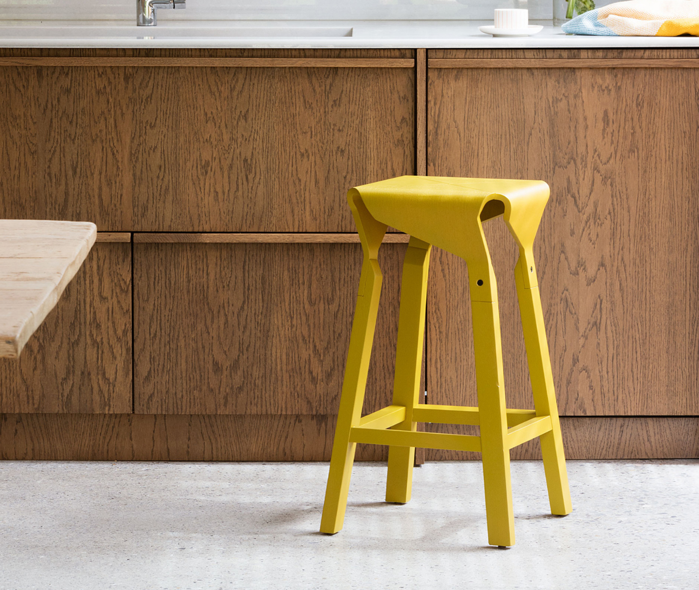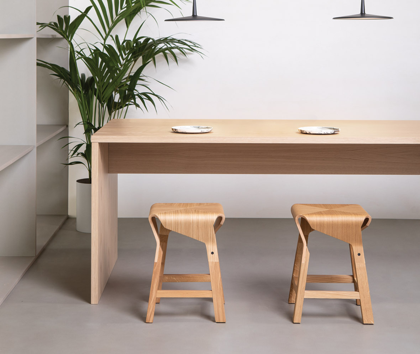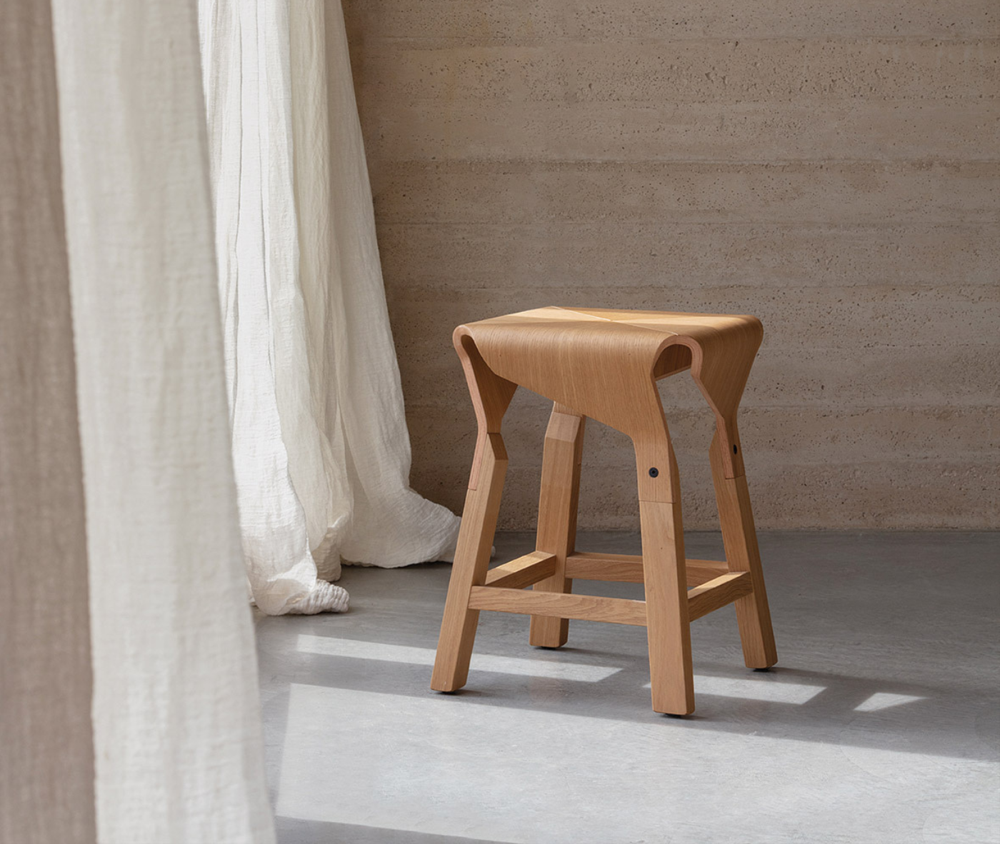 The Naoshima stool collection, designed by Emiliana Design Studio, explores the expressive and structural potential of curved wood. The gracefully assembled, flowing silhouette of the seat creates a dynamic interplay between form and space.