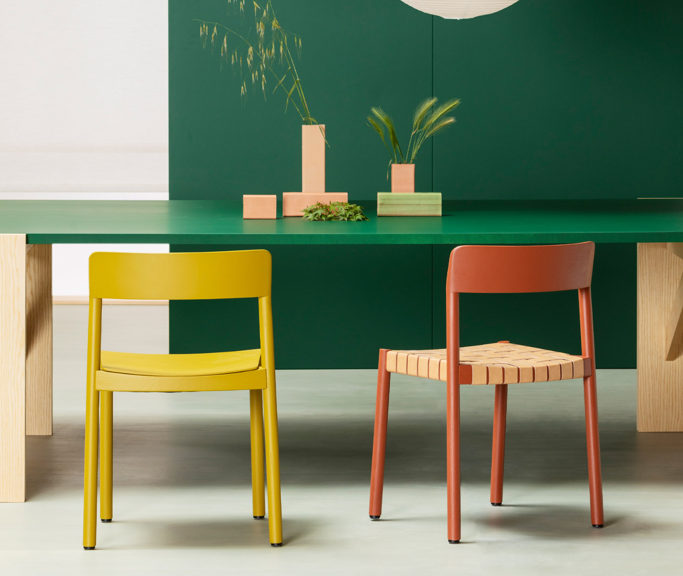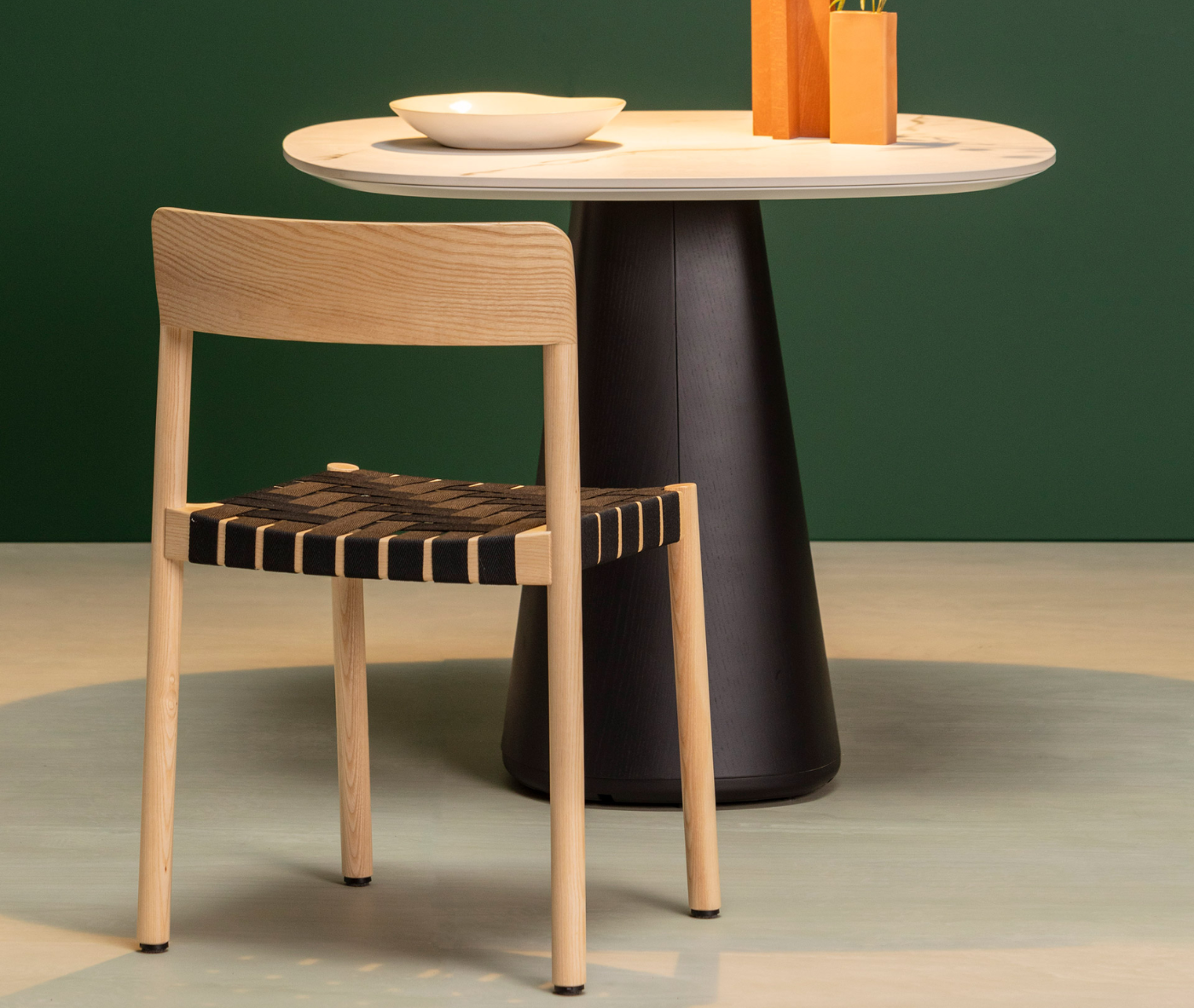 It is manufactured in ash wood and its backrest seems to have been sculpted to delicately mould to the back. The seat can be woven with different materials to offer a soft and comfortable sitting position.