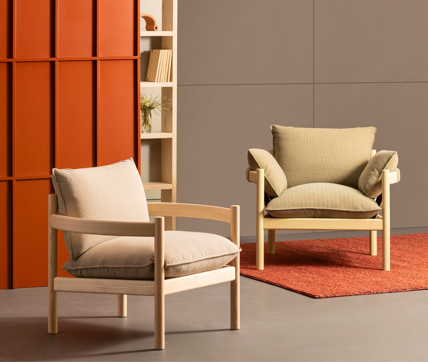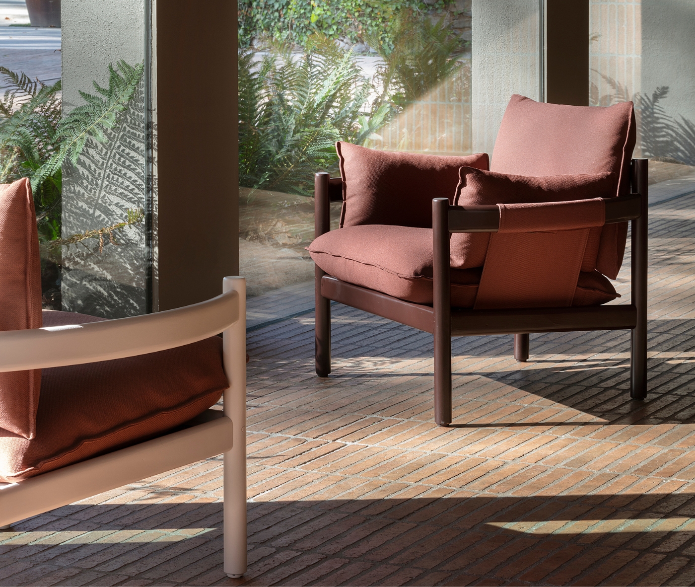 Rento Lounge is available in two configurations: Club, a more compact version ideal for intimate settings, and a wider model with softly cushioned armrests that enhance comfort and create an even more generous seating experience.