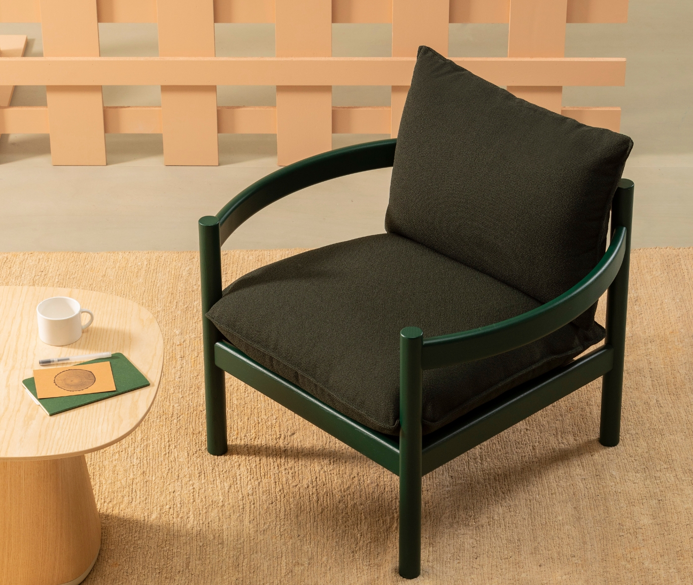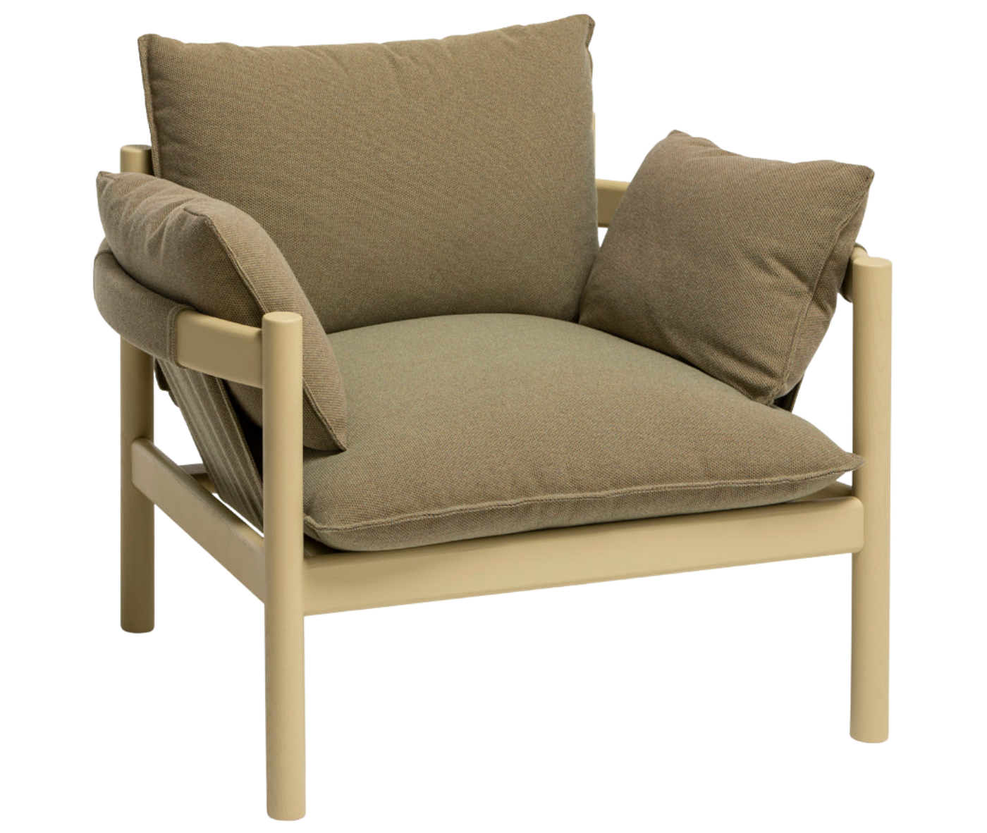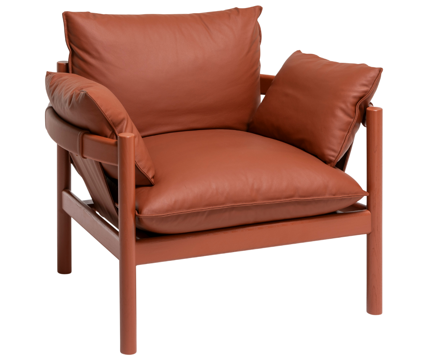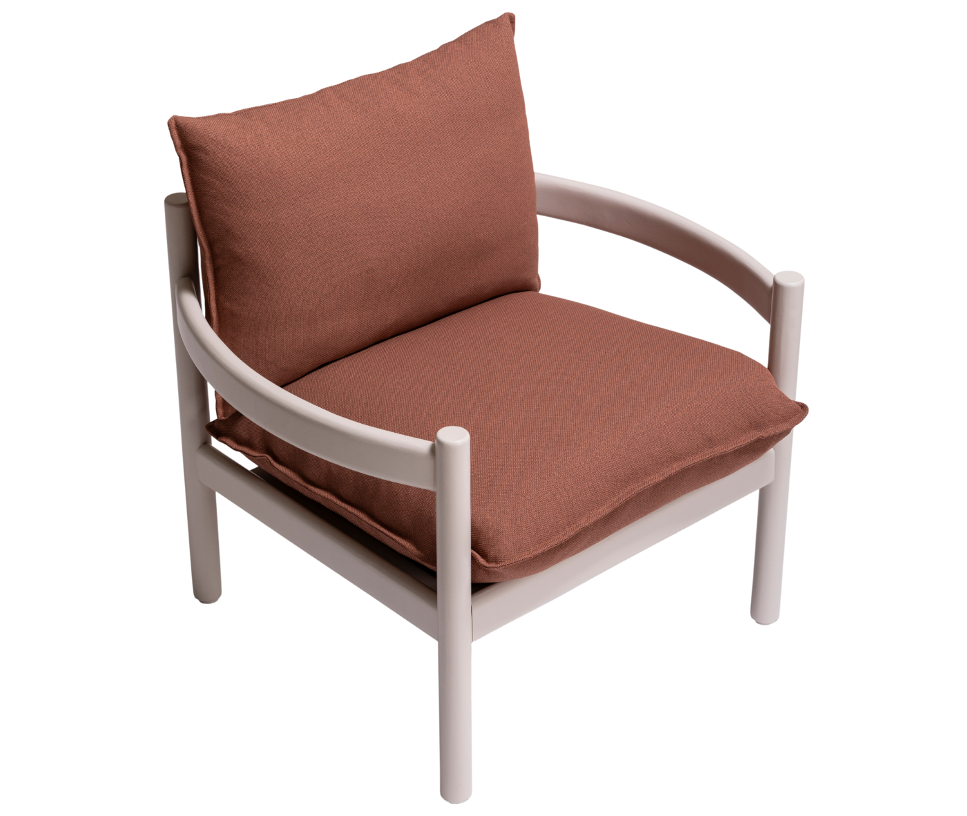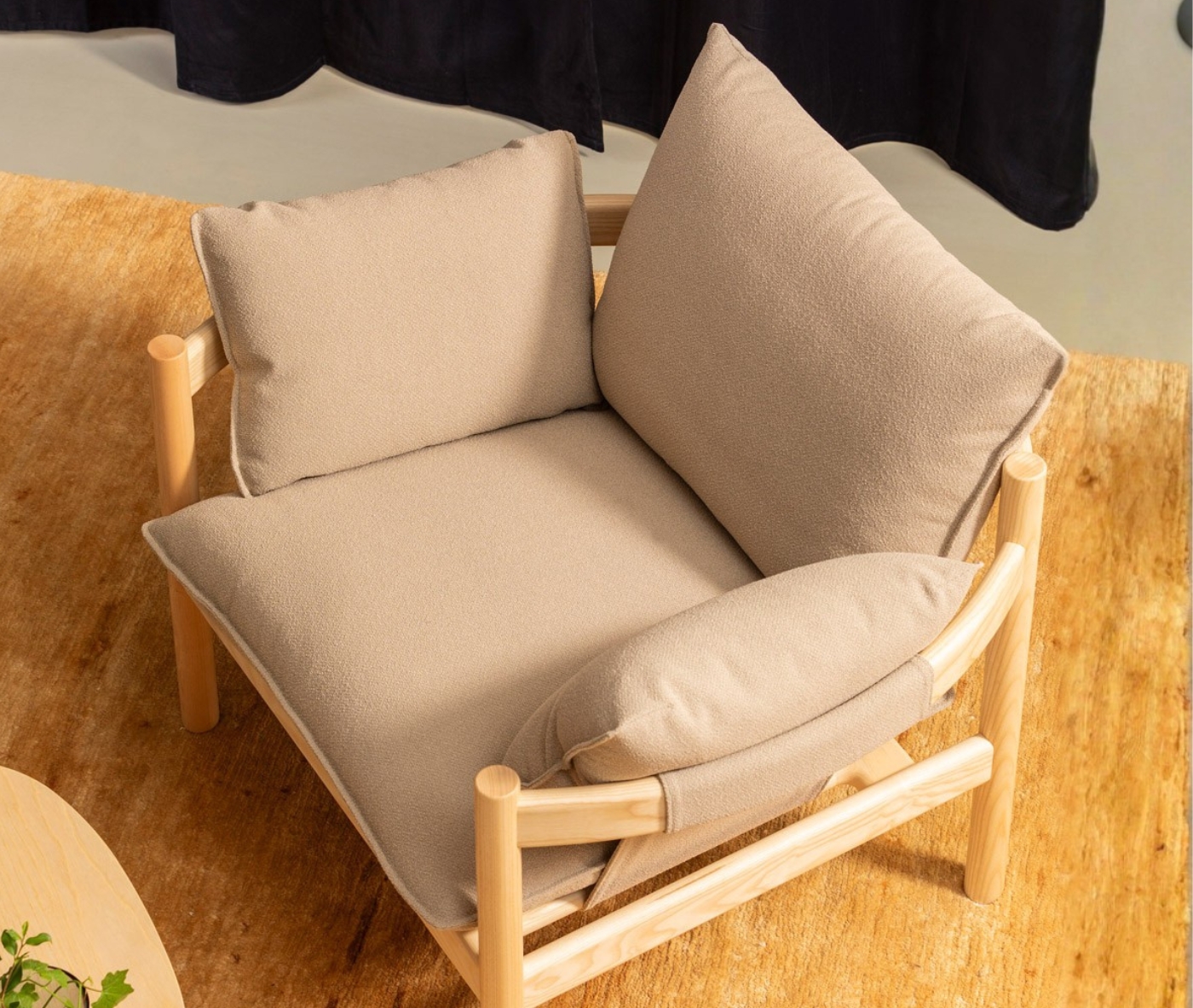 “Seen from above, the armrests and backrest of the Rento form an almost perfect circle with comfortable pillows which invite the person to sit and relax comfortably.”