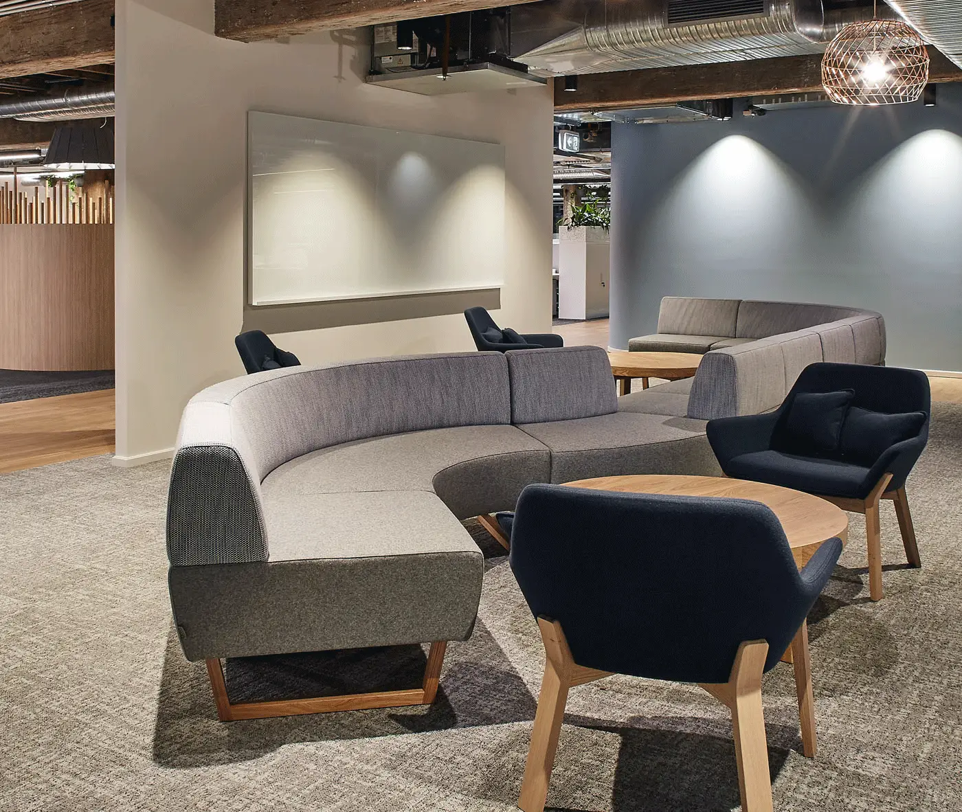 US is a functional modular lounge system comprising a number of elements to allow the creation of unique shapes for agile, collaborative and break-out spaces that blend corporate needs with hospitality style.