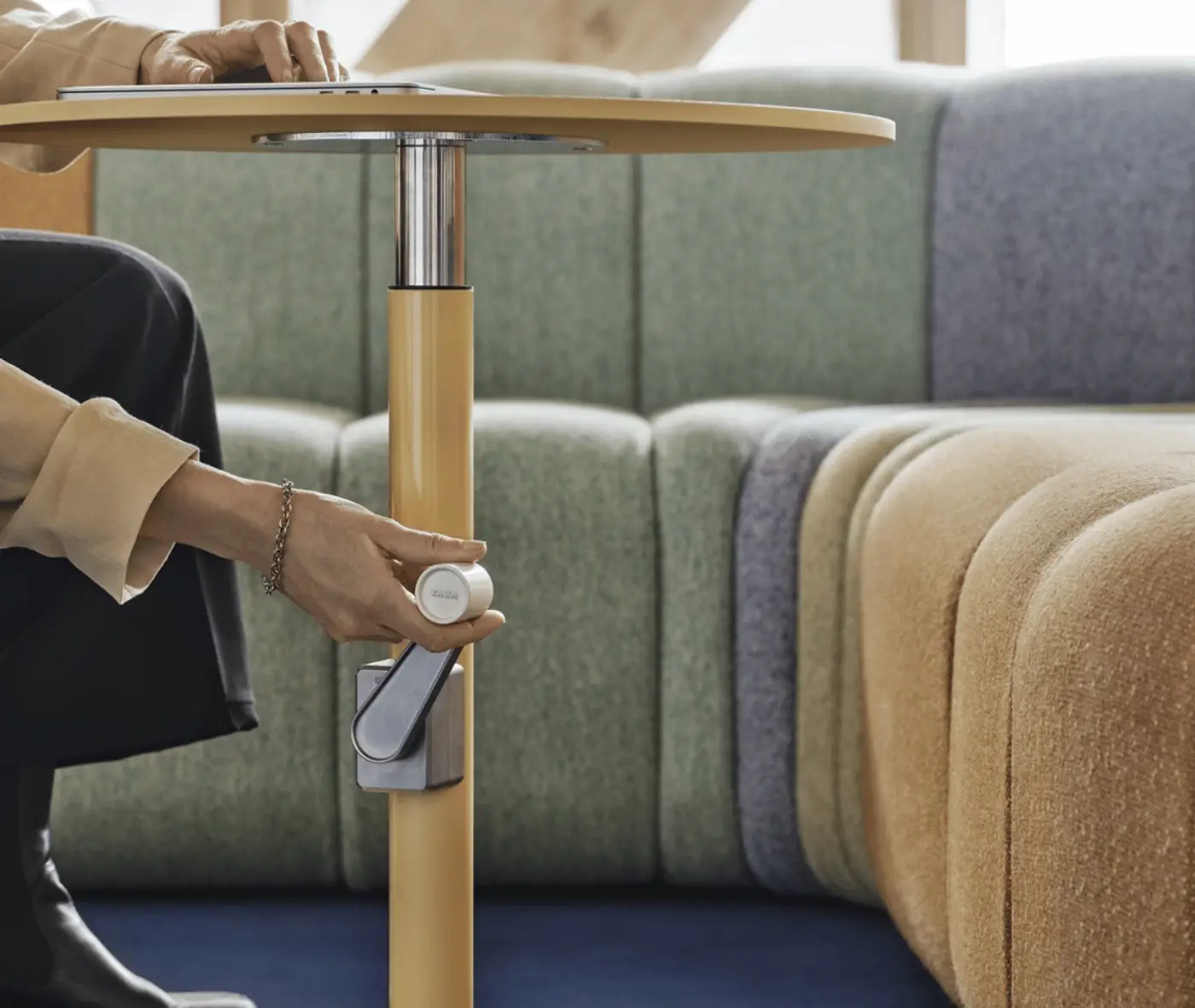 Of course in the future the function of cranking may no longer be needed, but for Blå Station VEVA can be seen as an educational product designed to preserve a simple and obvious manual intervention. VEVA invites users to actively interact with the furniture piece in all environments and boasts 4000 different height options across the two models if you count every millimetre.
