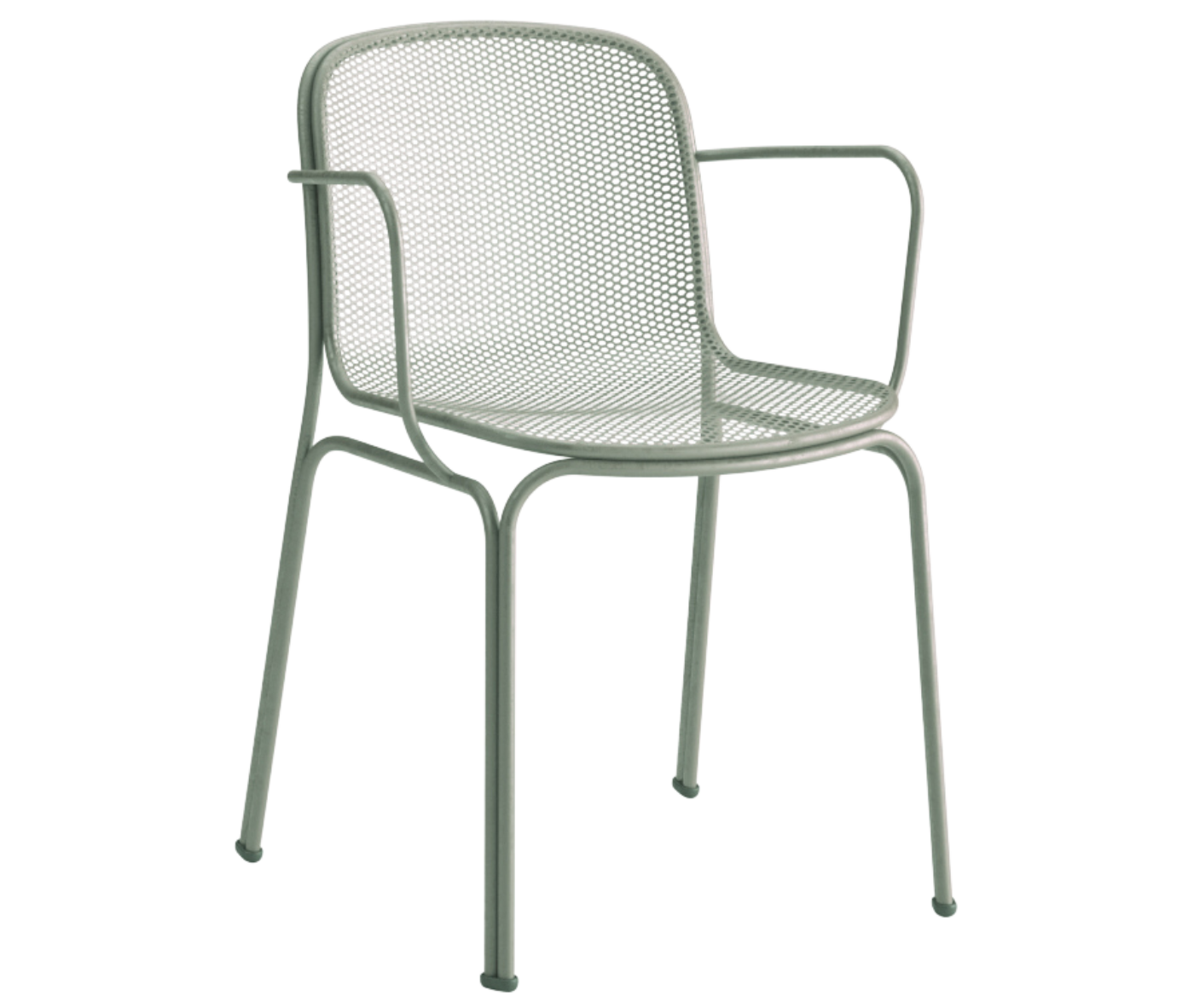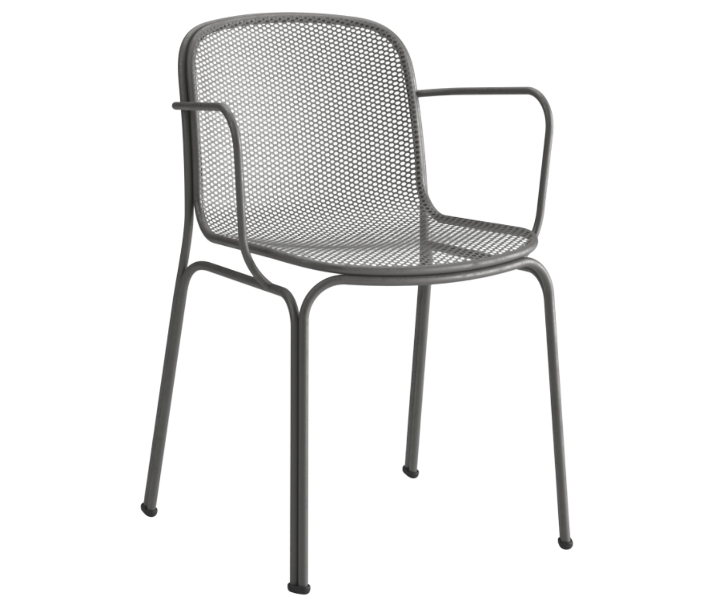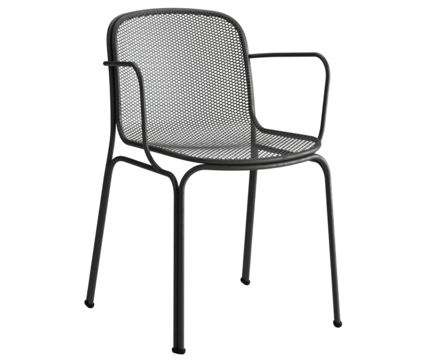 Villa 2 is an entirely metal chair featuring a steel rod frame with arms and a steel net stretched mesh shell.