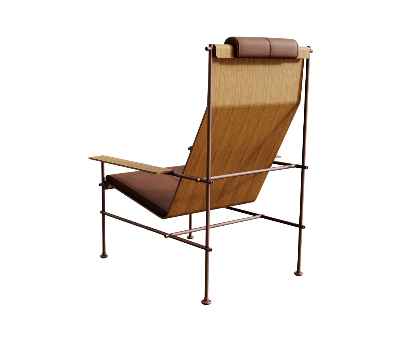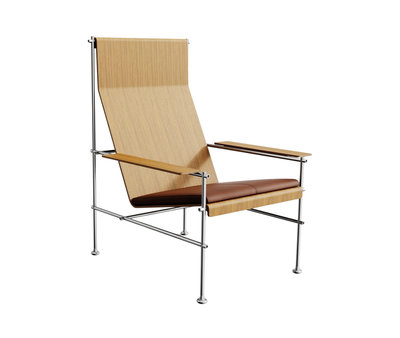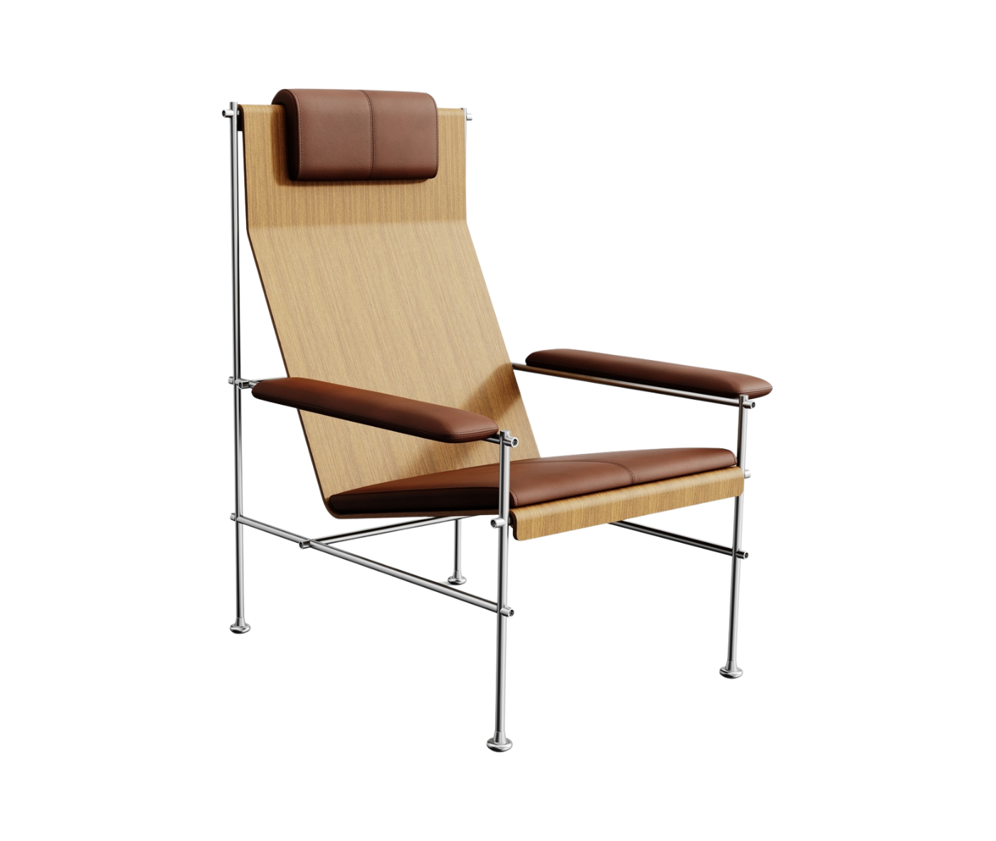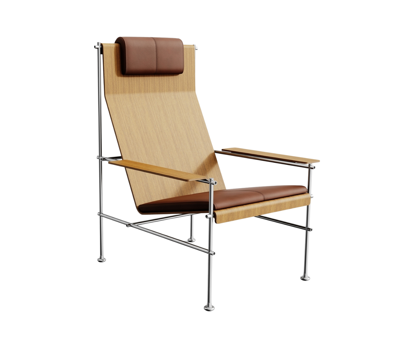 The Villhem chair features a compression-moulded wooden seat shell and armrests, which can be upgraded with padded armrests, an upholstered seat, backrest, and a neck cushion – available individually or together. The chair is also offered in a supersoft version, with a steel and nozag inner frame, comfortably padded and finished in leather. All models are designed to be easily disassembled for convenience.