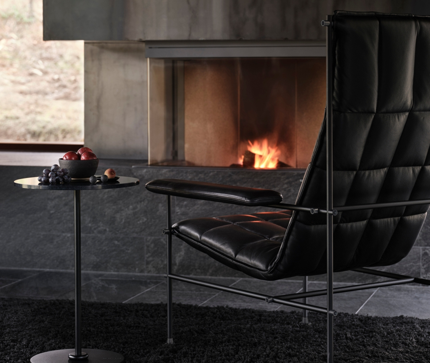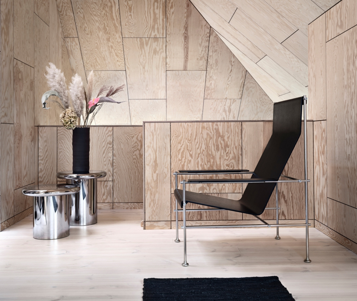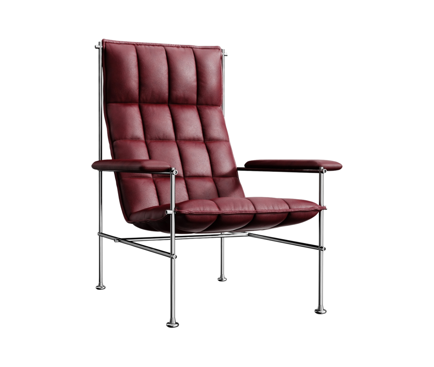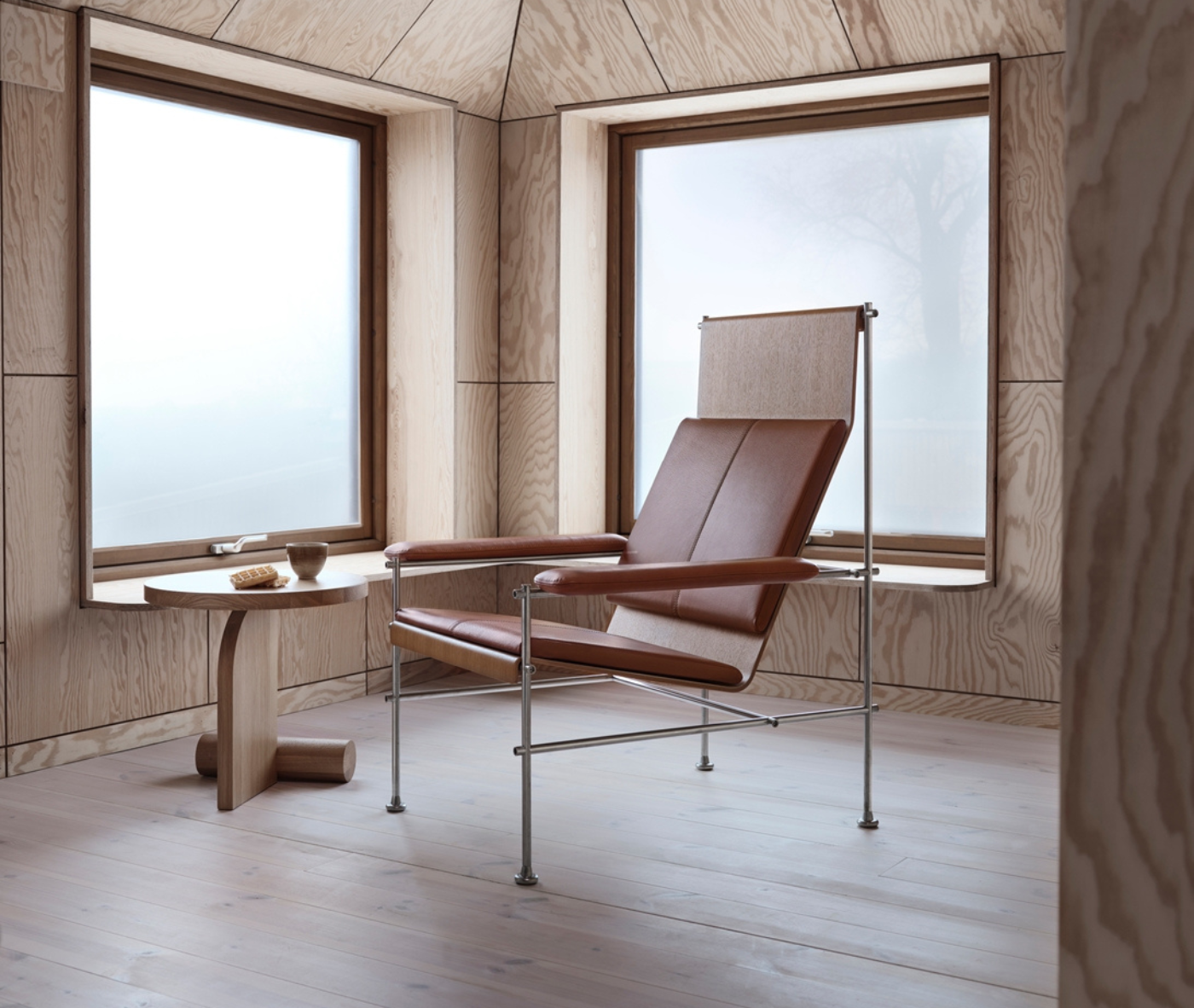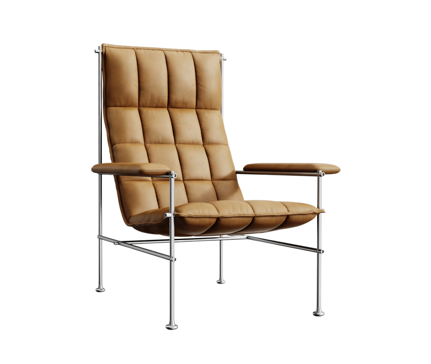 The Villhem chair features a compression-moulded wooden seat shell and armrests, which can be upgraded with padded armrests, an upholstered seat, backrest, and a neck cushion – available individually or together. The chair is also offered in a supersoft version, with a steel and nozag inner frame, comfortably padded and finished in leather. All models are designed to be easily disassembled for convenience.