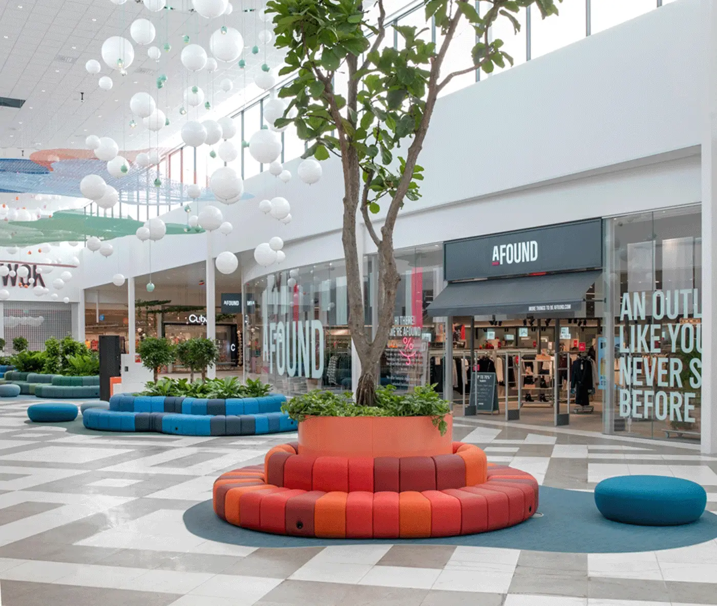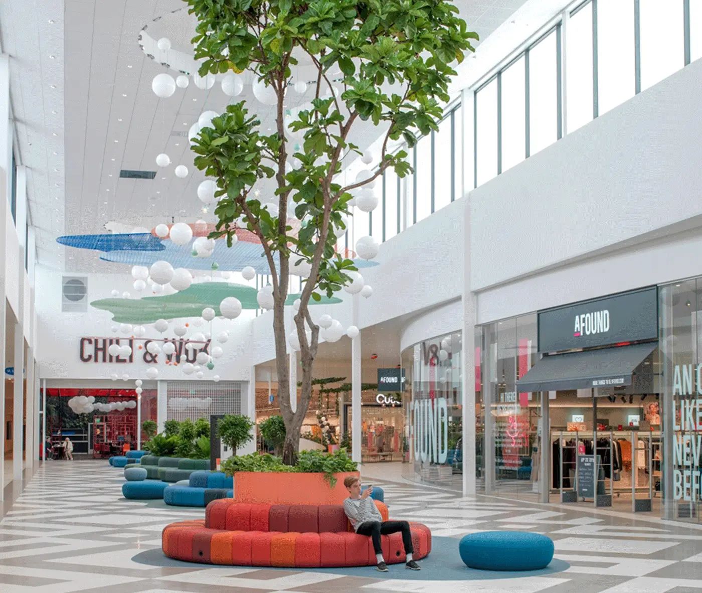 The unique thing about C4 is not only how expansive the common surfaces are, but also how the plants and trees are woven into the sofa systems. BOB fills the heart of the shopping centre and becomes a meeting place for gathering and recovery in the middle of the oasis.