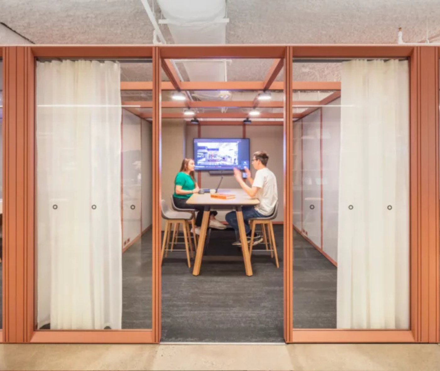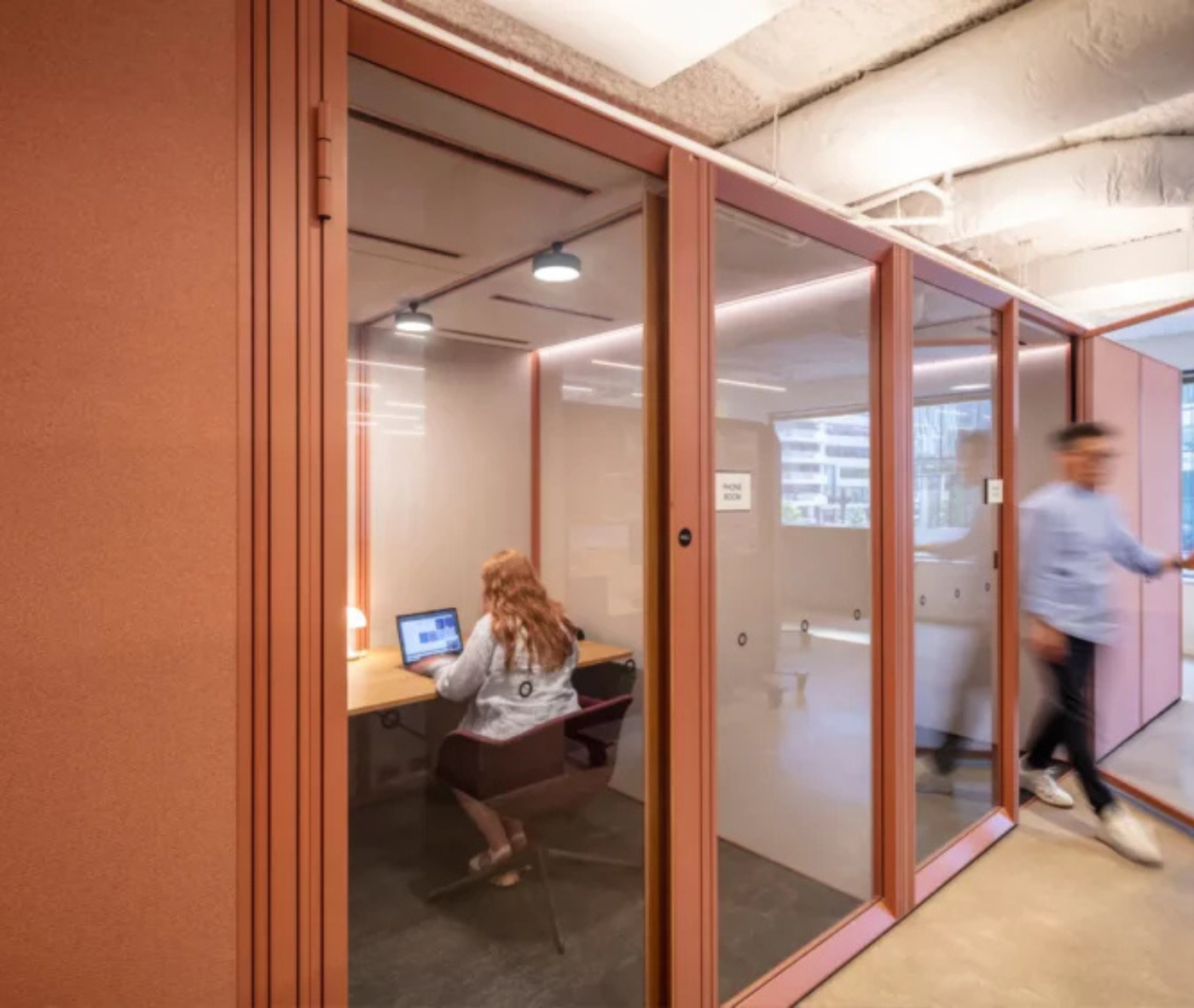 To achieve a space that balanced flexibility, sustainability, and acoustic performance, the team turned to Mute Modular— a fully customisable room-in-room system designed to evolve with changing needs. Working in close consultation with Mute Studio, Gensler installed 12 Modular spaces across the office, including phone booths, meeting rooms, lounge areas and private work zones.