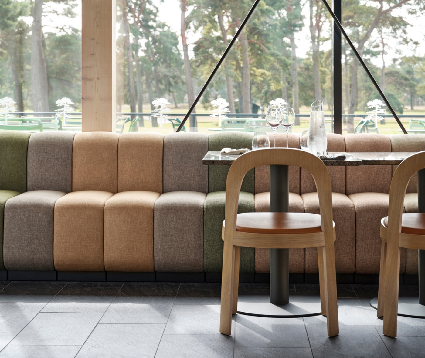 The architects Krok & Tjäder were commissioned to design the new and fantastic clubhouse, which would contain all conceivable functions and possibilities, but above all social areas and a restaurant that could swell and shrink between seasons and seasons, and easily be divided at events. At the same time, the architects made a proposal for a floor plan with selected furniture from Blå Station who asked if they could contribute with their knowledge regarding planning, function and spatiality. The answer was a yes from both the golf club and the architect.